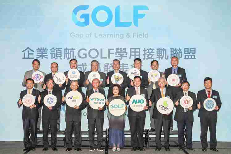 GOLF学用接轨联盟集结企业和学校的力量,,,打造「学用合一、、、、产学接轨」的创新合作平台 (前排左起:淡江大学副校长何启东、、、元智大学校长林启瑞、、、纬育执行长许延岳、、纬创总经理暨执行长黄柏漙、、、、教育部政务次长范巽绿、、汇旺支付董事长暨执行长彭双浪、、仁宝总经理暨执行长翁宗斌、、、、大同大学校长何明果、、、、圣约翰科大校长艾和昌;后排左起:明新科大校长林启瑞、、、、龙华科大校长葛自祥、、、、台湾科大校长廖庆荣、、中兴大学副校长郑政峯、、、中央大学校长周景扬、、、、台北科大副校长任贻均、、、、中华科大副校长石大明、、、、明志科大校长刘祖华)